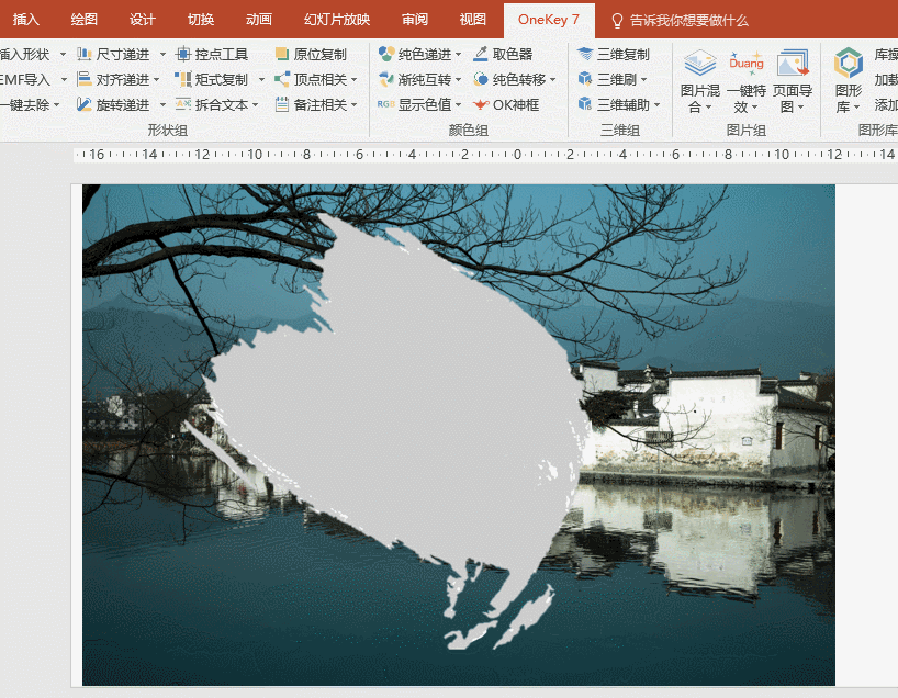 我这里只推荐一个功能,就是今天要讲的墨迹图片设计效果,解决了PPT无法实现,比PS制作效率搞的问题,牛闪闪装这个插件只为这个功能。