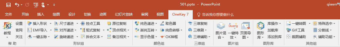 首先要在PPT上装一个插件,叫OneKeyToos的插件,这个大家自行百度下载,到处都是。