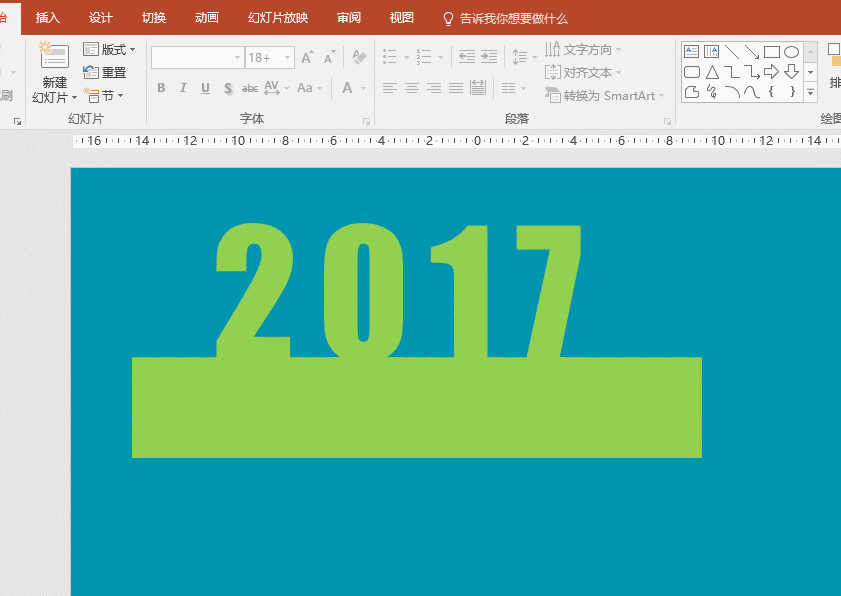 接下来重要的一步,同时选中数字和长方形,然后利用图形-联合功能进行图形合并。(此功能需要PPT2013的版本)看动图操作: