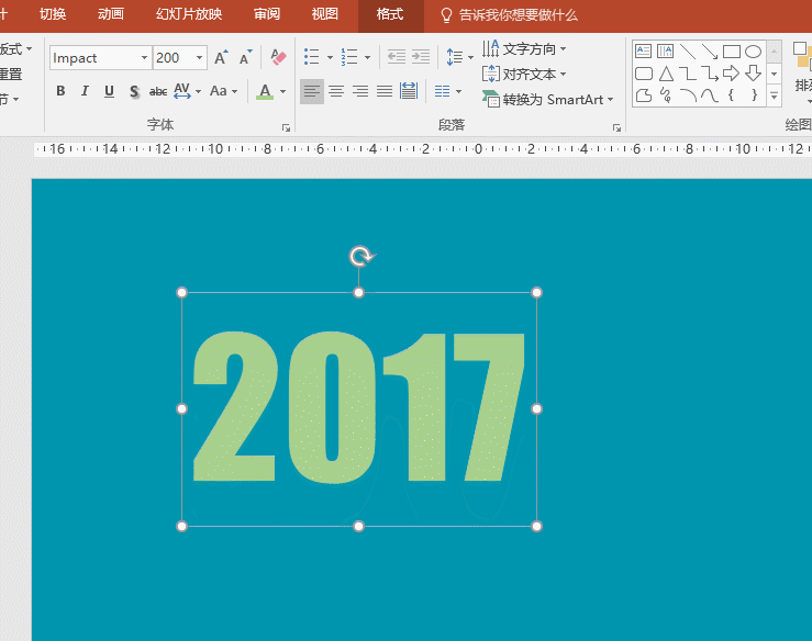 新建一个PPT页面,然后插入一个数字,字体最好比较粗,这样容易出效果,牛闪闪本例使用的是IMPACT字体,设置为200磅大小。字符间距25磅左右。什么?不会设置字符间距?请看动图操作: