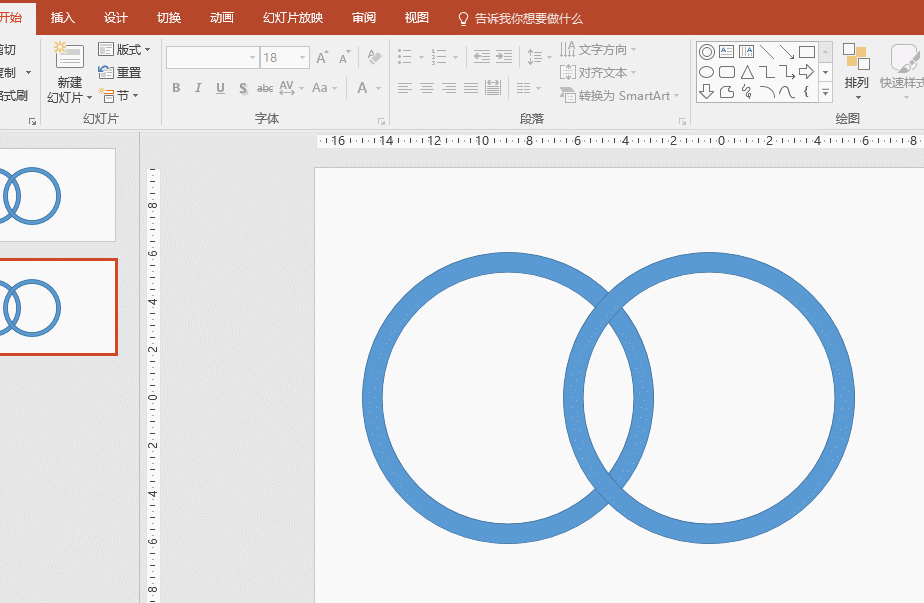 在“插入-图形-环形”中按住shift键拖拽一个正环形,拖拽黄色调节点,调节环形图的厚度。然后按住Ctrl+Shift键进行横向拖拽,复制一个即可。具体看动图操作: