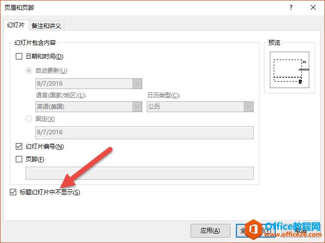 这里牛闪闪补充一点,如何让PPT首页不显示编码呢?只需要将插入页码设置页面,勾选“标题幻灯片中不显示“。(下图箭头处)
