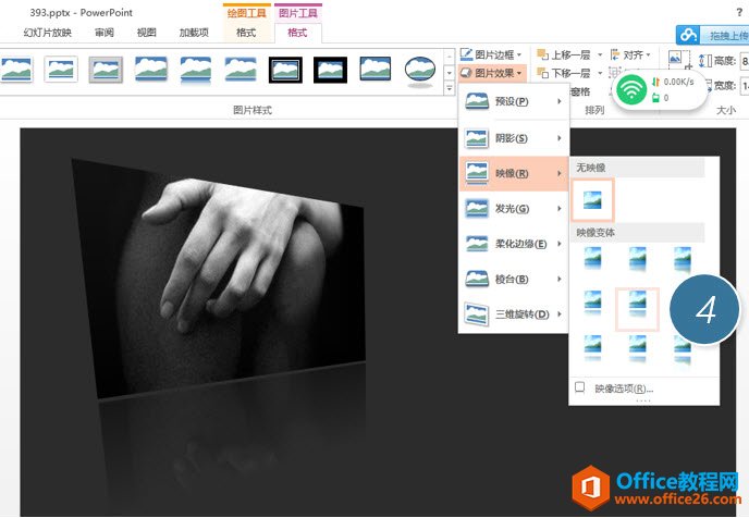 依然选中图片,然后点击“图片效果—映画—映画变体”。(下图4处)
