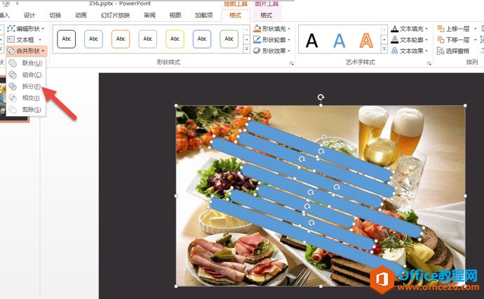 利用PPT2013独有的图形“拆分”功能,将图片拆分掉。