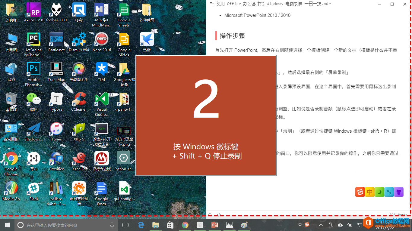 录制时将自动隐藏 PowerPoint 的窗口,你可以随意使用并记录你的操作,之后你只需要通过快捷键「Windows 徽标键 + shift + Q」就可以结束录制。