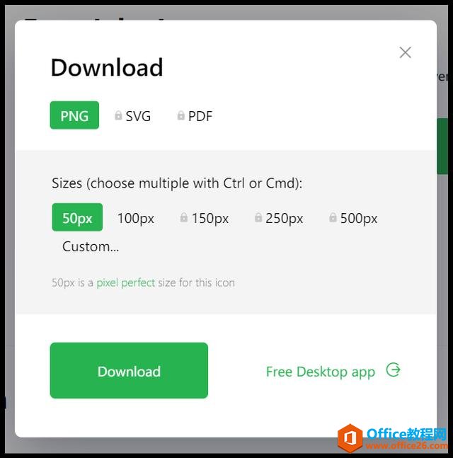 支持 PNG 格式下载,两种大小免费,SVG、PDF 格式以及更高像素的图标则需要付费解锁。不过,得到了 PNG 再拉进 AI「图像描摹」,得到高清图其实也不费功夫。