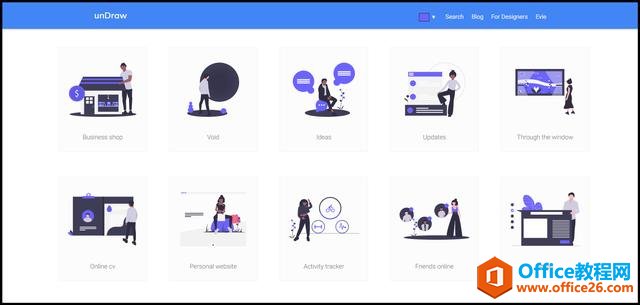 巧妙的插画能为PPT增色不少,Undraw 提供了至少500种不同场景的插画(我只数到500……),你可以通过搜索关键词来找到自己想要的场景。