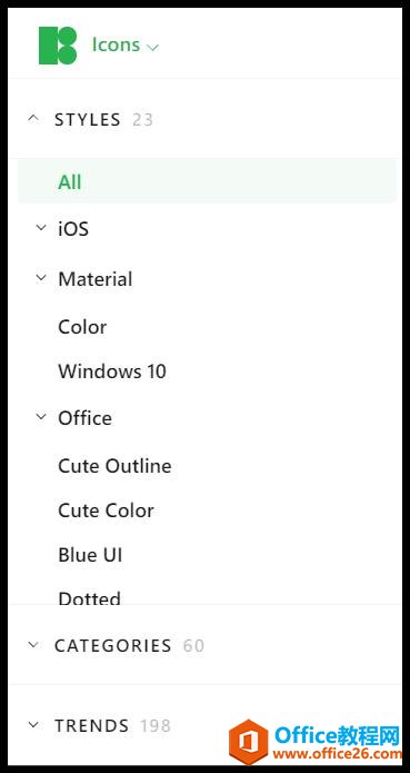 Icons8 的图标胜在数量庞大且分类齐全,在不清楚检索关键词时运用这些细致的类别,能大大提高找到合适图标的效率。