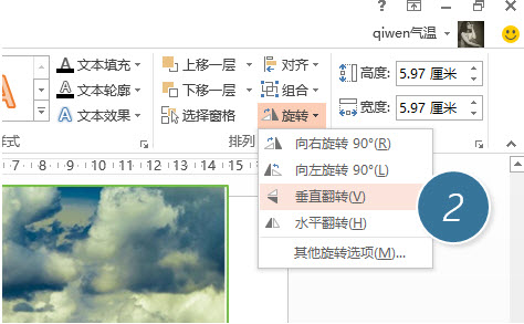 然后在图片上插入水滴形图形(下图1处),利用Ctrl+shift+鼠标拖拽进行快速的拖拽复制,并利用图形工具的翻转和旋转工具进行调整,绘制出如下图形。(下图2处)