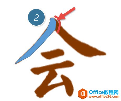 然后利用该工具,对书法字体进行“描边”的操作。注意“描边”时候,想象书法每一步的写法。注意下图箭头所指的位置,就是根据对书法的理解描边出来效果。