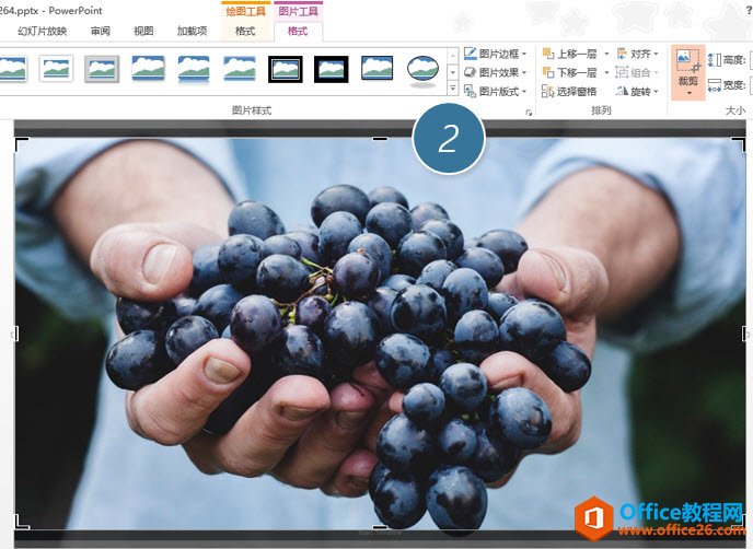 拖拽裁剪的黑色短线(下图 2处),发现照片原来很完美。这就是PPT为什么容量大的原因之一。