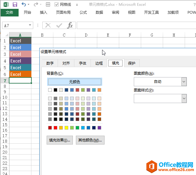 在单元格格式填充选项中,可以调整单元格背景色。