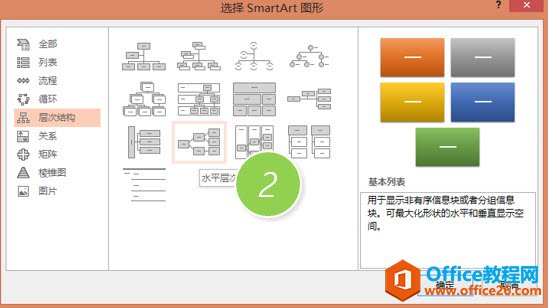 紧接着,在新弹窗口中单击选择“层次结构”-“水平层次结构”。(下图2处)