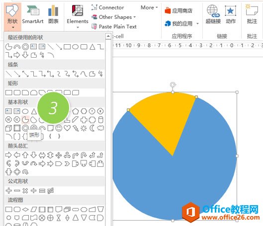 在PPT中按住Shift键画一个圆形,然后再画一个饼形,做成百分比饼图,如下图3处所示: