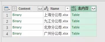 点击确定后,Query自动把数据源中的所有内容全部合并到一起了,如下: