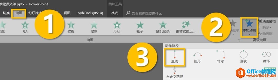 选中粉色矩形,点击【动画】-【添加动画】-选择【直线】动画: