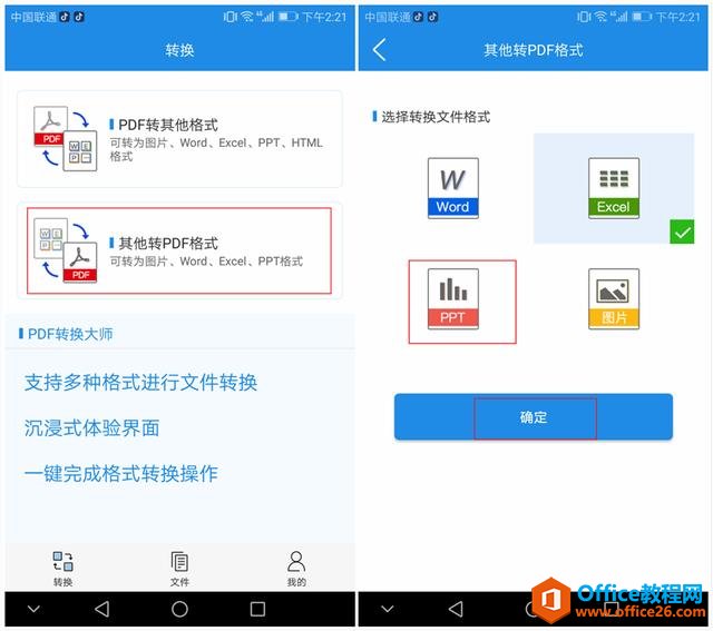 最后,如果你想要将制作好的PPT保存为PDF格式的文件,以便随时查看的话,可以试试PDF转换大师,它支持手机端转换,只要点击【其他转PDF格式】——选择【PPT】——点击【确定】,即可快速将PPT转换为PDF格式的文件。