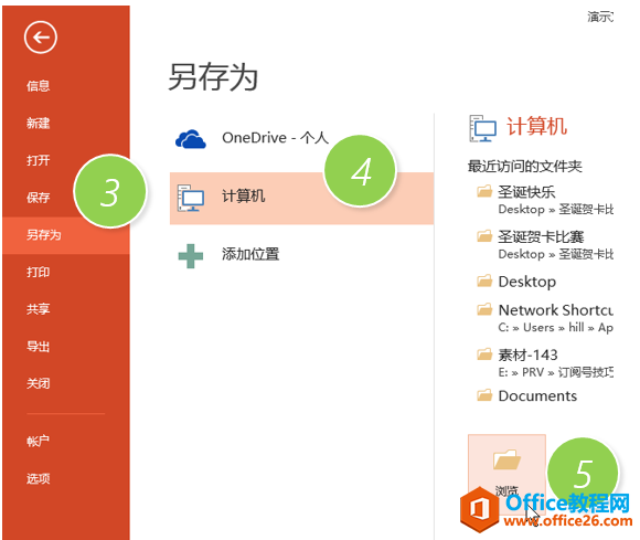 点击“另存为—计算机—浏览”按钮。(下图3处)