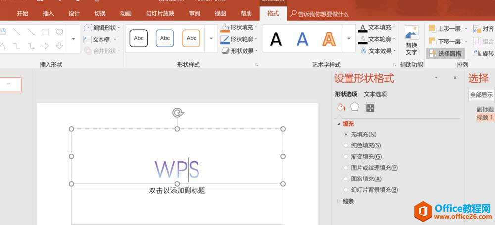 6、最后在格式的窗格里面,可以在那里的选择窗格就可以,就可以制作一个一模一样的字的渐变效果。