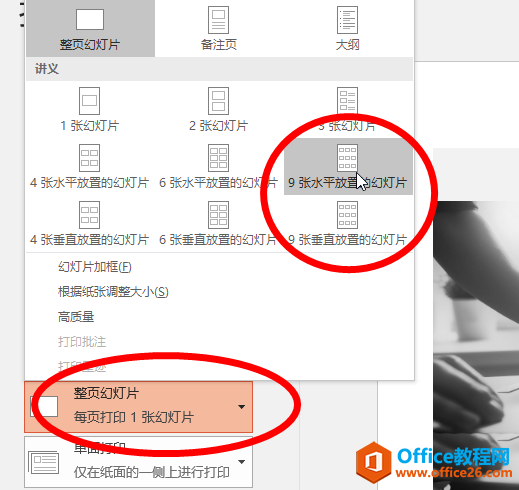 3、接着在下方找到整夜幻灯片-9张水平或垂直放置的幻灯片