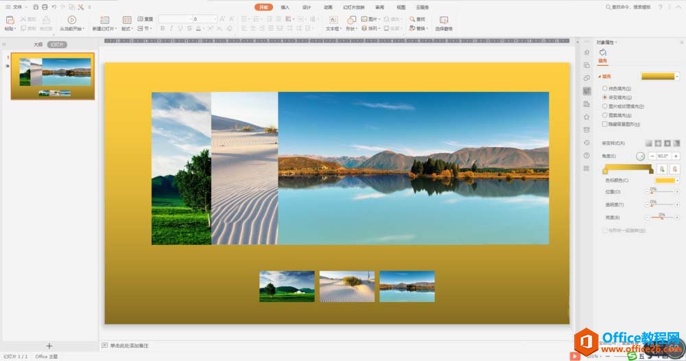 1、启动PPT,新建幻灯片,设置黄色渐变背景。