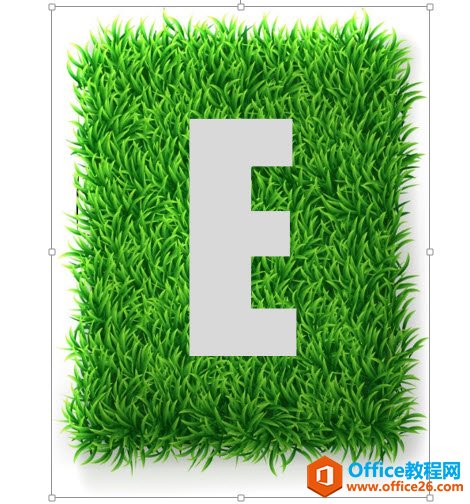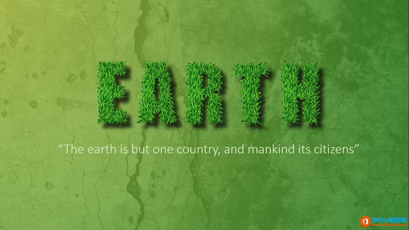 新建一张幻灯片,插入一张草地背景图,然后在写上EARTH单词中的E字母。牛闪闪使用了系统自带的Impact字体。大家也可以使用效果更好的其他长款字体。