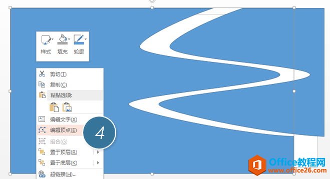 但好像不是之前所说的透视效果啊!所以还需要利用顶点进行调整。选中图形,点击鼠标右键,点击“编辑顶点”这个按钮。(下图4处)
