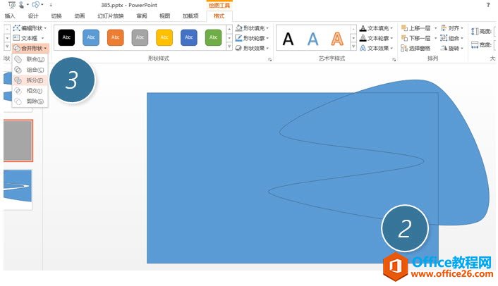 结合在绘制一个长方形,并同时按住Ctrl键选中之前画好的图形,利用“形状—拆分”按钮,拆分掉图形。