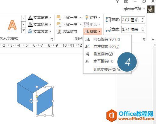 将平行四边形复制一份,然后进行“水平翻转”(下图 4 处),然后将其拼在一起。