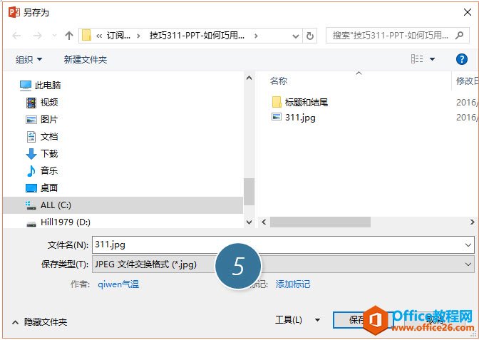 接下来重要操作来了,保存该PPT,按F12键另存为图片。(下图 5 处)