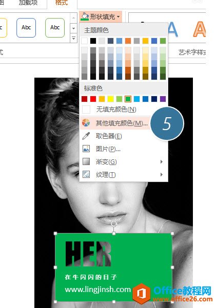 接着选中图形,在“形状填充”中选择“其他颜色填充”。(下图5处)
