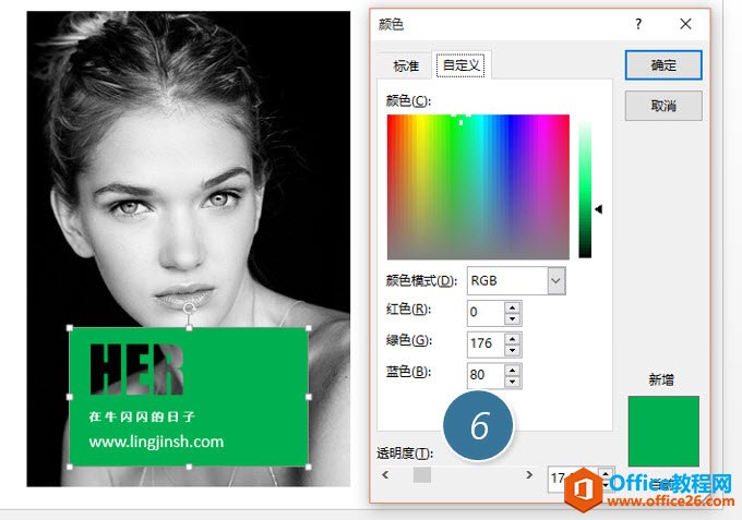 在新弹窗口中,将底部的透明度调整到18%左右即可。(下图6处)
