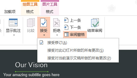接受完毕后,需要最后一步确认结束审阅,这时PPT的比较功能使用完毕。