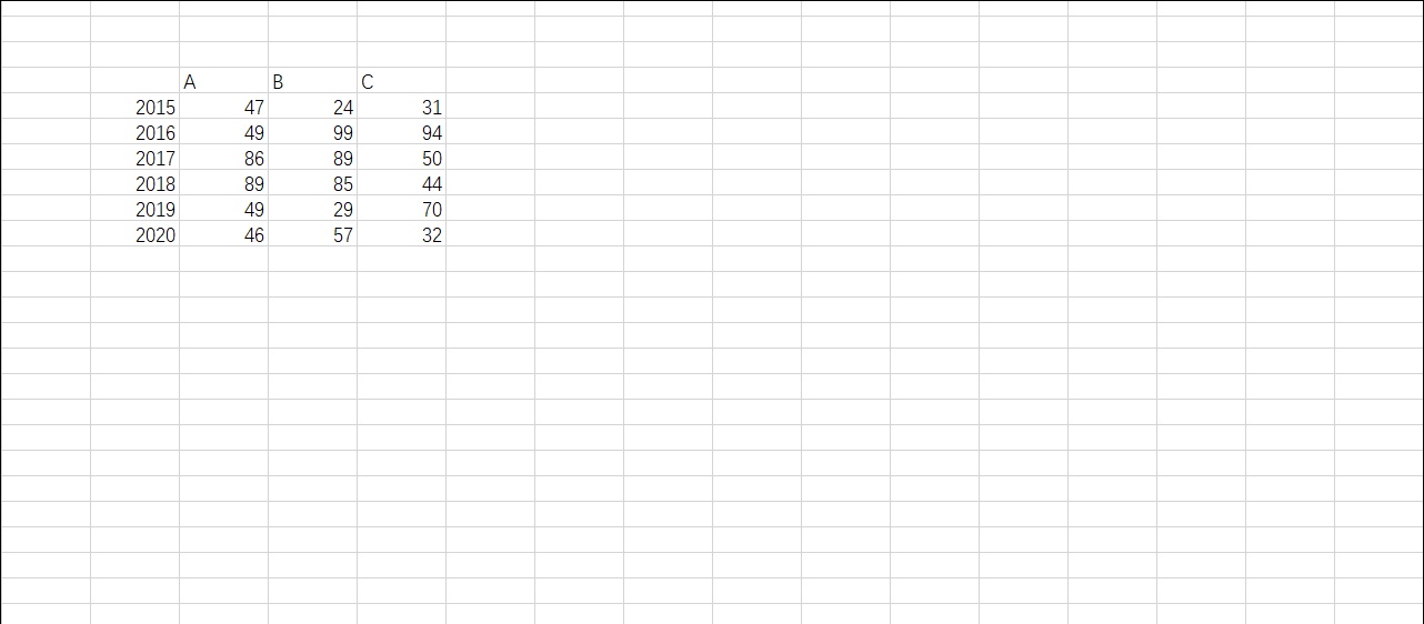 构造ABC公司的数据构造,参考效果如下,注意年份在左侧右坐标,产品在横坐标
