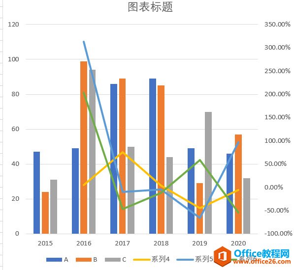 excel 如何快速制作多柱形与折现组合图表 实例教程