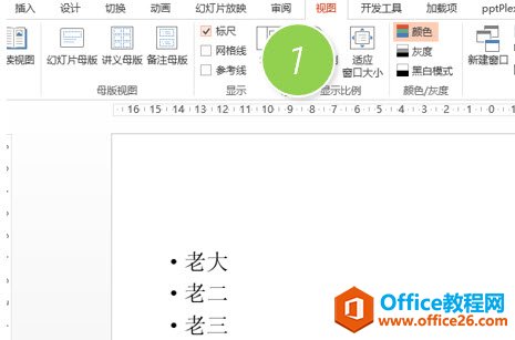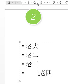 打开标尺,PPT页面上方会显示标尺,然后将光标放在“老四”处,然后在观察标尺的标记。就会是如下图2处所示:发现“老四”有做过段落缩进。(如果不太熟悉Word标尺标记,可以学习牛闪闪的《Word2010应该这样玩》教学视频)