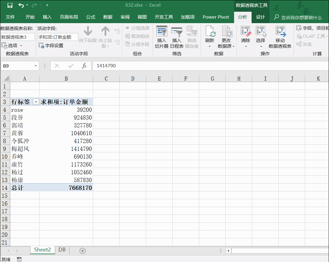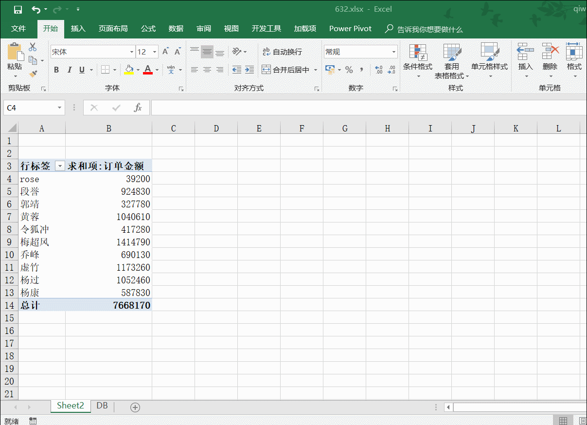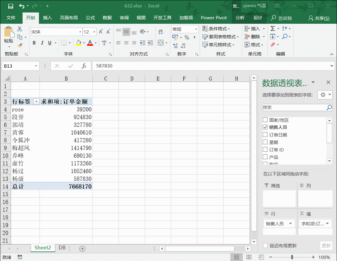 利用原始数据产生最直接的销售人员的汇总表,方法也比较简单,看动图操作。