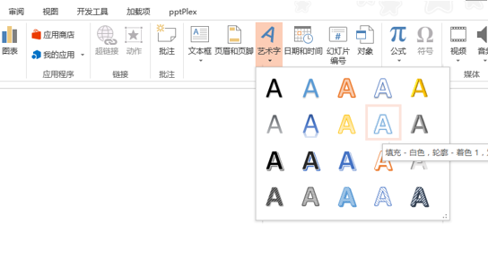 新建一个PPT,在“插入-艺术字”,选择任意一种风格,插入艺术字:在牛B闪闪的日子。