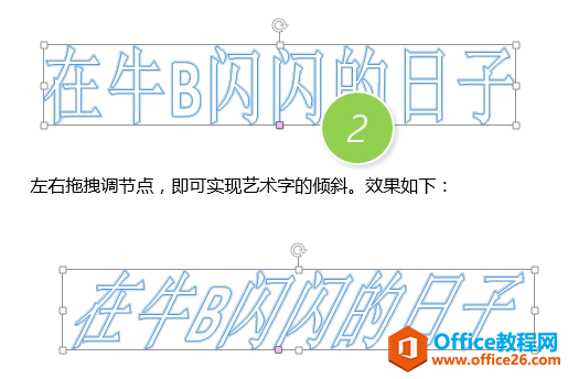 文本框的小粉红点出现,她其实是艺术字的效果调节点。(下图2处)