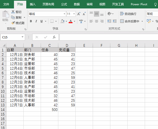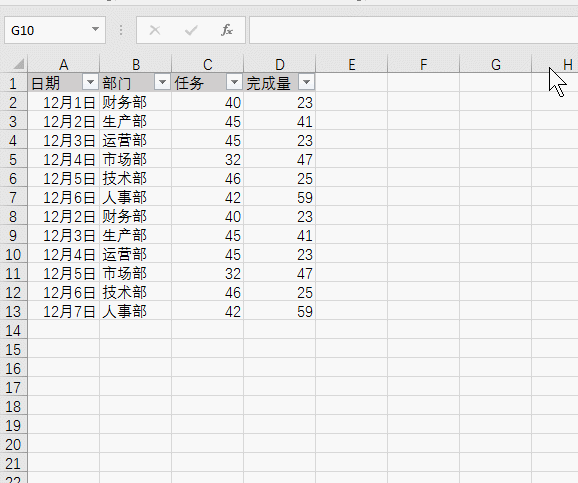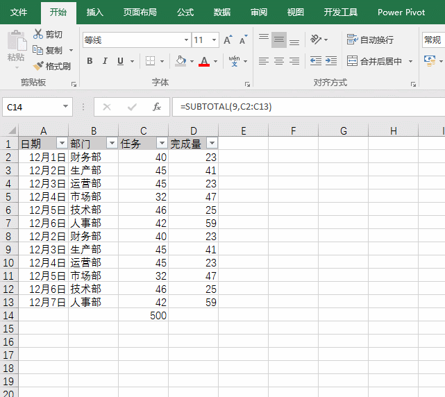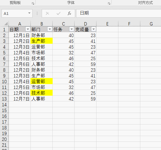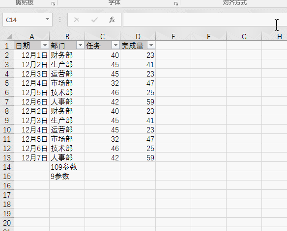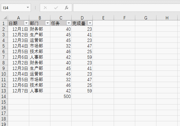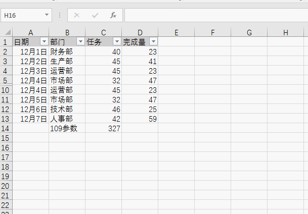 是不是统计很迅速,但如果我们想统计财务部的任务量的求和,利用筛选功能操作,你就会发现…..