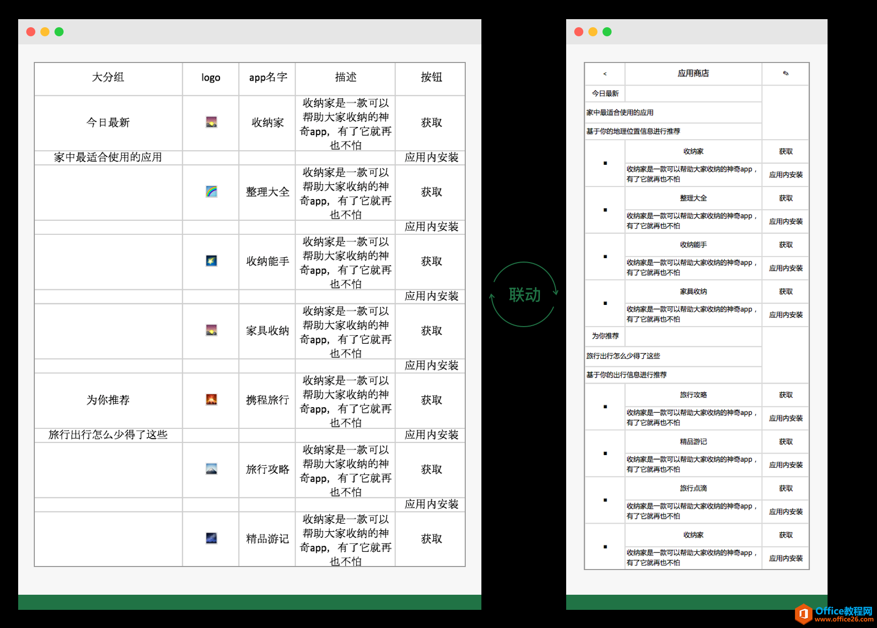 将表格里面的数据有主次地排布成手机界面的形式(此处使用上文的“跨窗口数据联动”)