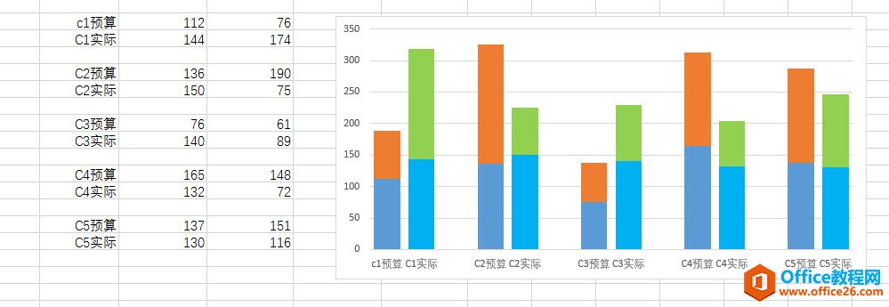 堆积柱形图,居然是预算和实际对比,也就是双列双堆积柱形图?这个怎么做呢?