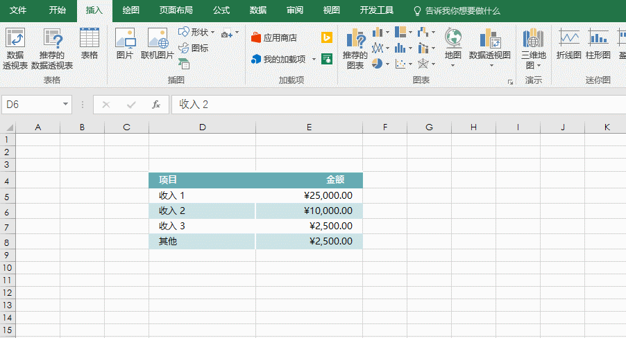 我们重新建一张表,重新输入上表的月收入。然后将其转换成动态结构,具体操作如下: