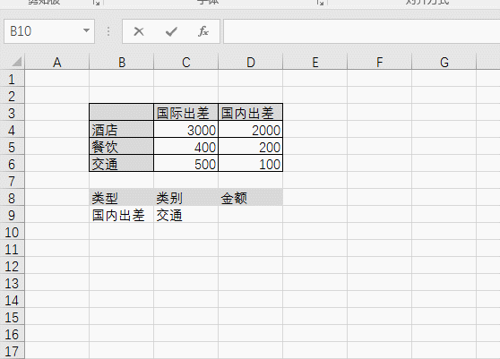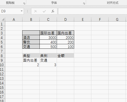 需要利用B3:D6区域的二维结构的表格,快速定位并找出对应的数据