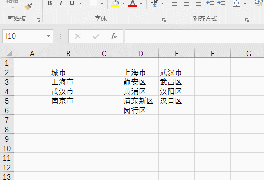excel如何实现下拉选择城市后,后续单元格能选择对应的区县?
