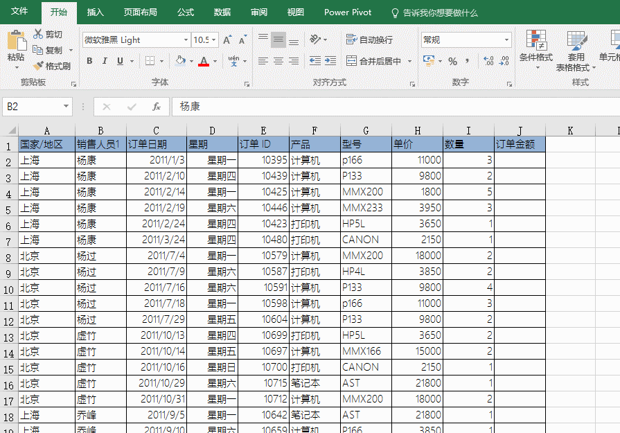 如何利用F5定位批量撤销合并的单元格,问问如何反向合并单元格呢?比如把下表中B列销售人员相同的人进行合并?