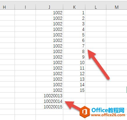 拆分完毕后,就会发现第二列存在一点问题。K列的0001没有完整的显示,又时候还会出现拆分不完整的情况。看下图的箭头处。