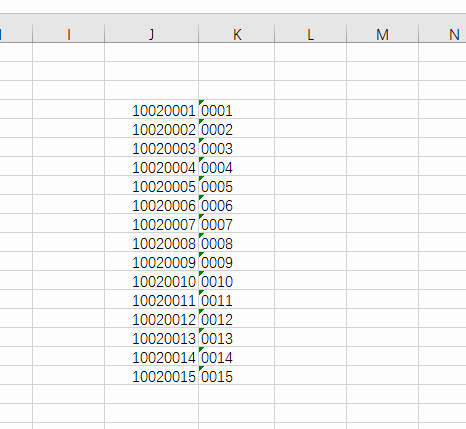 当函数取出来后,再贴成数值的时候,发现有绿色小点,说明K列是文本形式的存储方式。一种思路是忽略绿点错误,一种是转换成数值,可以一转换就会又变成数值形态,没有前面的000。看动图操作。