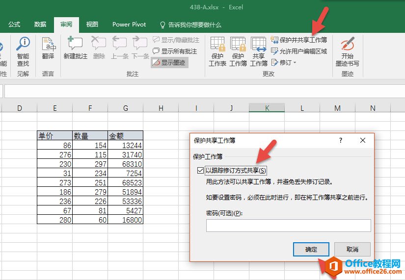 点击“审阅—保护并共享工作簿”按钮。按下图箭头出进行设置。