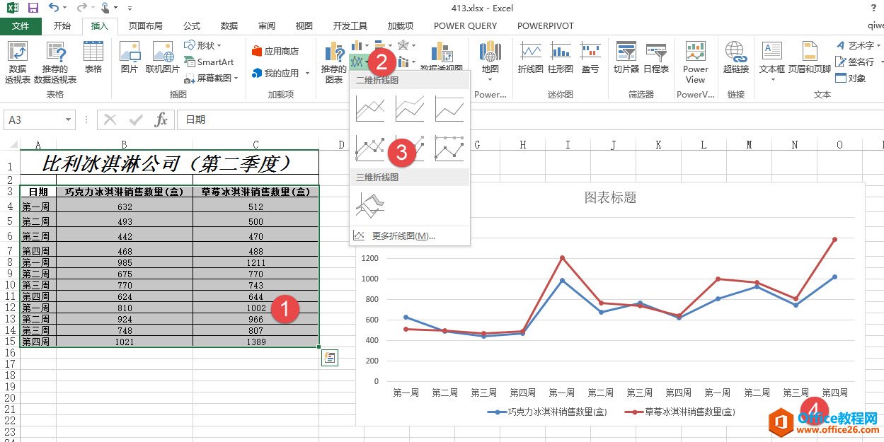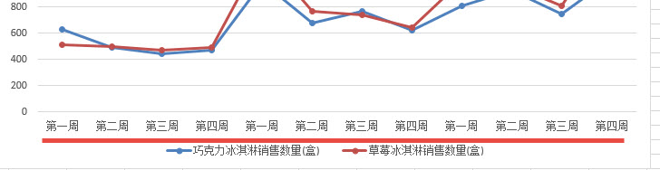 举例如果我们要生成下表中比利冰淇淋公司第二季度的两种巧克力冰淇淋的销量走势。